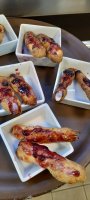 Pour créer les yeux maléfiques grâce aux emporte-pièces, il fallait de la patience car nous devions couper un disque de mozzarella puis ajouter par-dessus un disque plus petit d’olive noire.